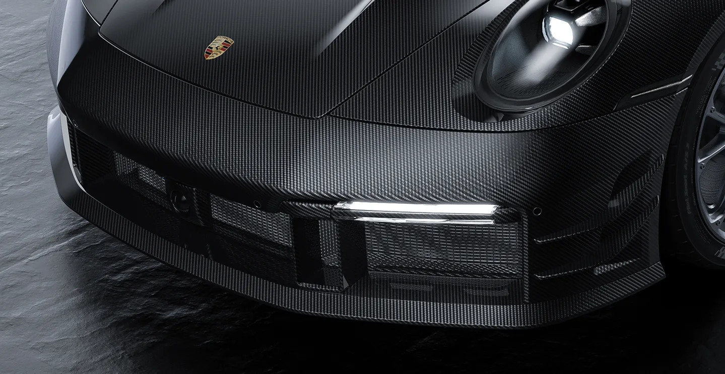 Bold Aesthetics: A sculpted carbon fiber splitter adds race-inspired aggression to the 992.2’s front profile.